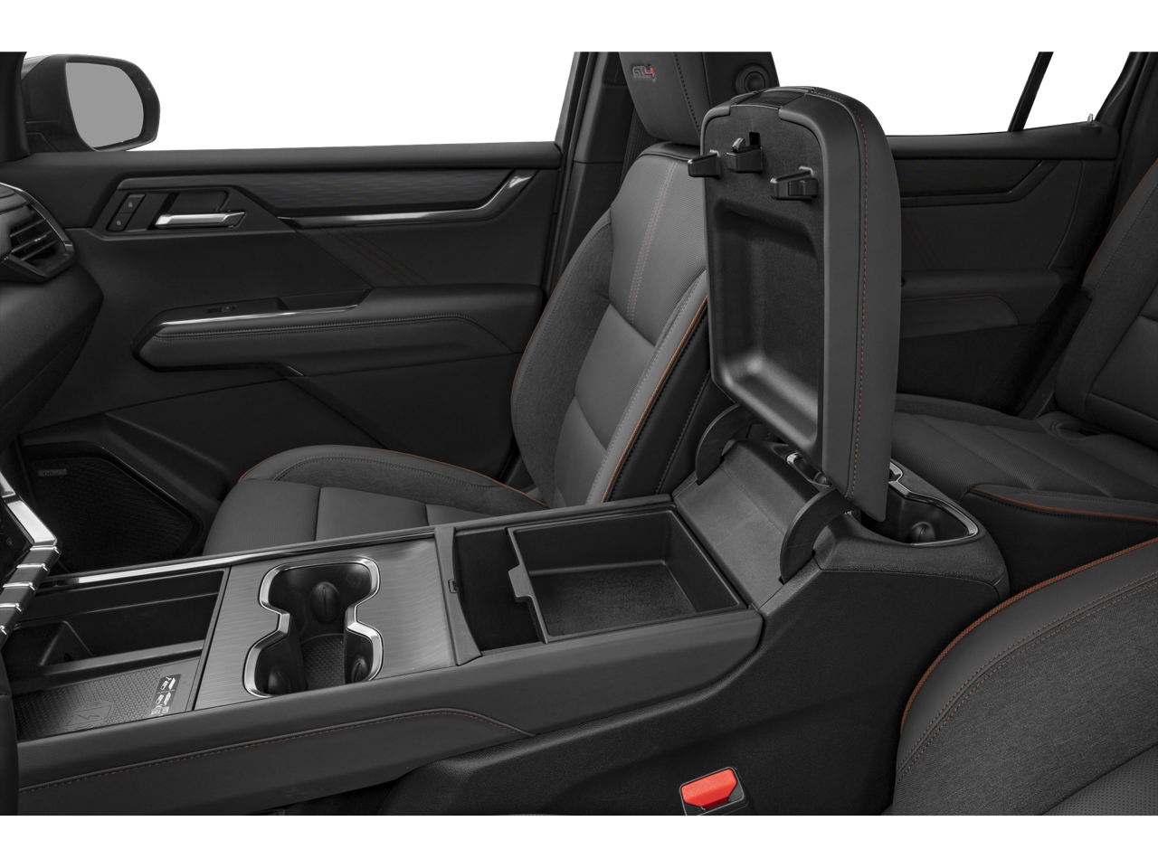 - Console, front center with 4 cup holders and storage, includes rear storage